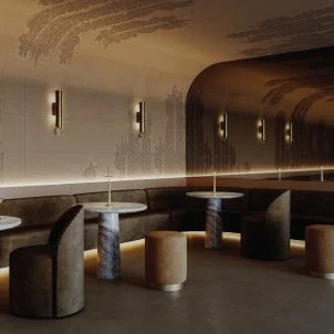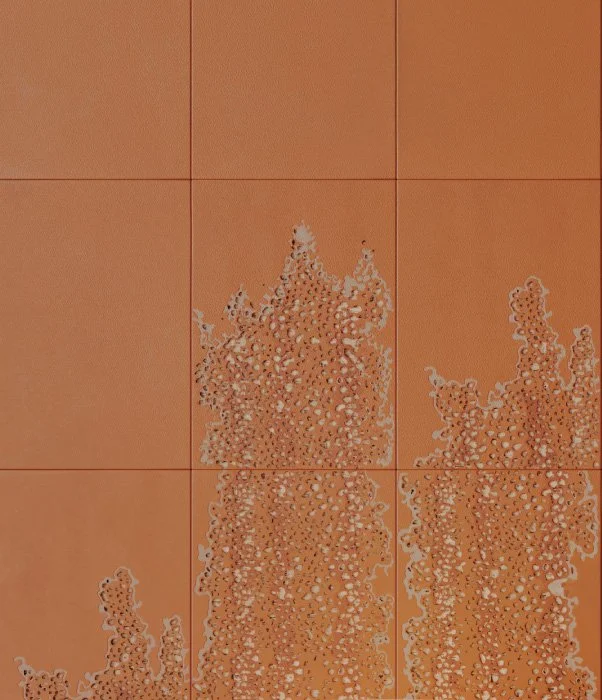 Woven, perforated, laser cut, embroidered…leather or suede tiles go straight onto the wall with 3M backing—and no scraps.